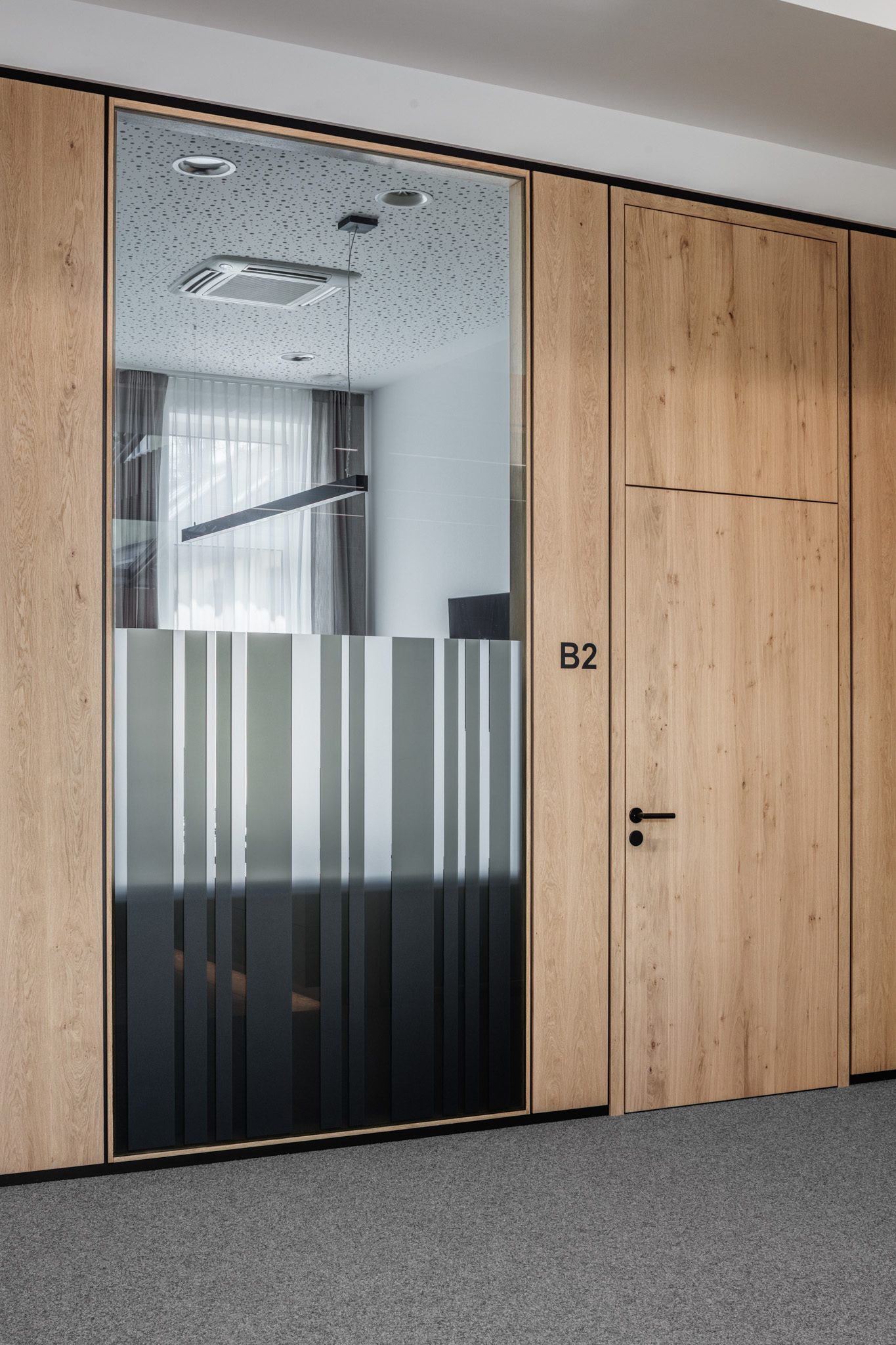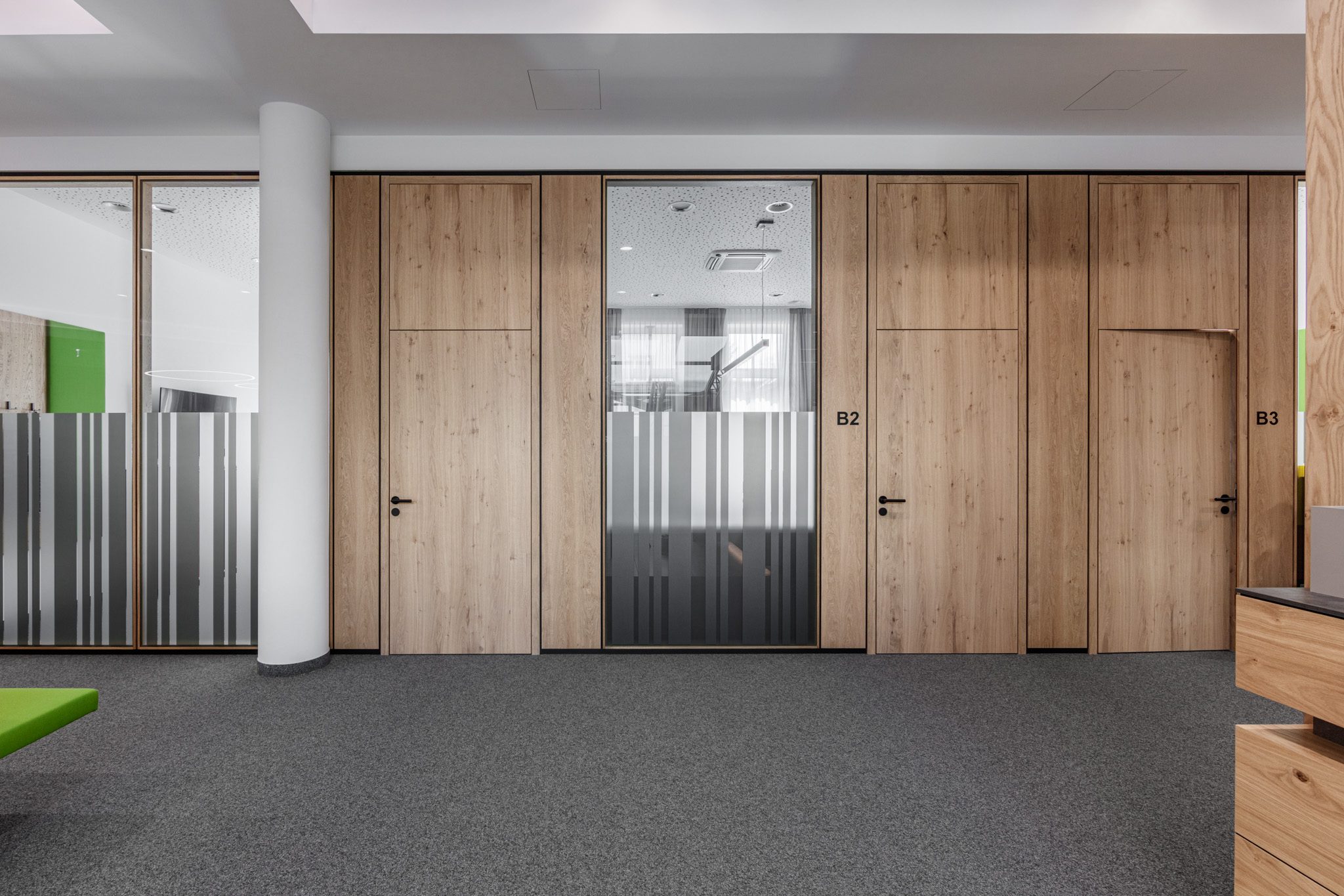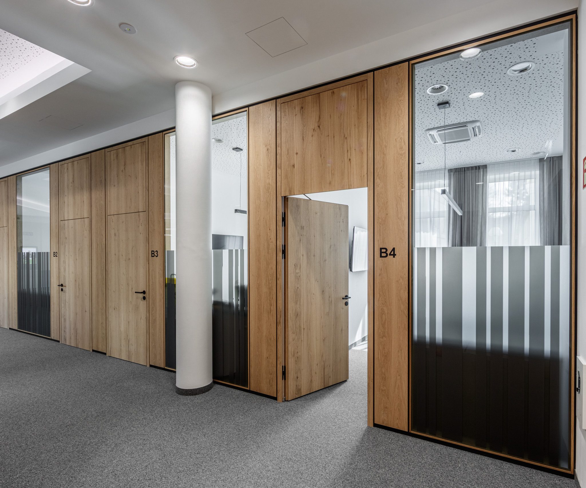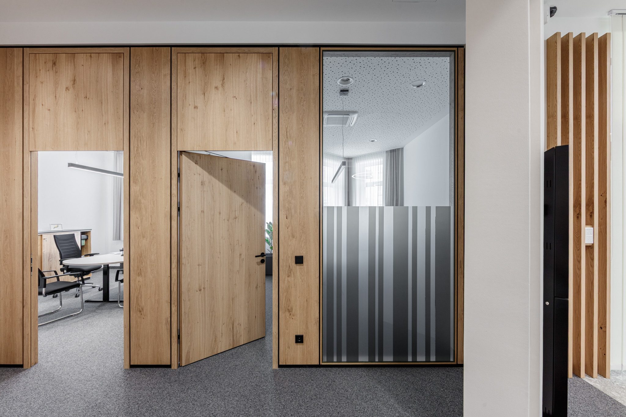 „Im Auftrag von der Tischlerei Manigatterer wurden im Zuge der Modernisierung des Kompetenzzentrums der Raiffeisenbank Waidhofen a. d. Thaya die Kassen und Beratungsbereiche mit Systemtrennwänden von Scheicher.Wand ausgestattet. Die Ausführungen in Asteiche mit getönten Glas sorgt für klare Raumstruktur sowie eine ausgewogene Verbindung aus Offenheit und Diskretion. Die Kombination aus natürlichen Materialien und Transparenz prägt eine moderne, ruhige Raumwirkung.“ – Florian Salfelner